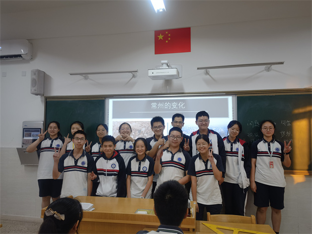 九(1)和九(3)班的家长向同学们介绍了常州名胜:中华恐龙园、天宁寺、春秋淹城,东坡公园,聚焦美食圣地——双桂坊,探访购物天堂——南大街、北大街、万达广场。这是山川毓秀、人文鼎盛的交融,是令人追忆和品味不尽的画卷。