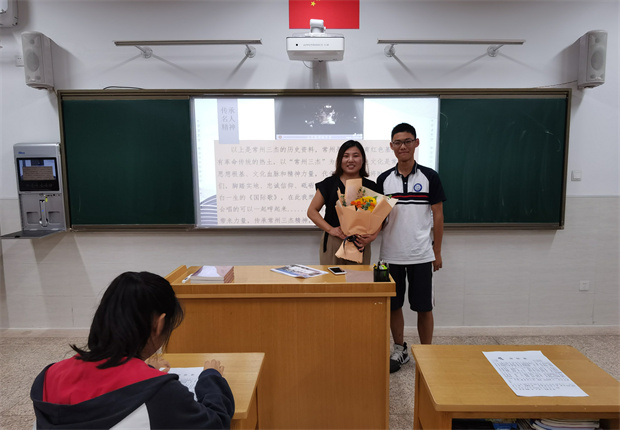 九(5)班和九(7)班的两位家长向同学们介绍了“常州三杰”的故事——“为大家辟一条光明的路”的瞿秋白,“谋将来永远幸福”的张太雷,“利社会、利国家、利天下”的恽代英。这三位常州青年,用自己的生命和鲜血,凝结成誉满中华的“常州三杰”精神。
