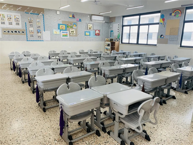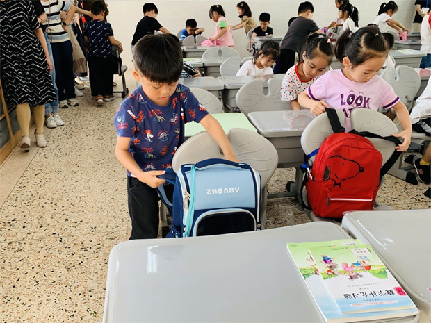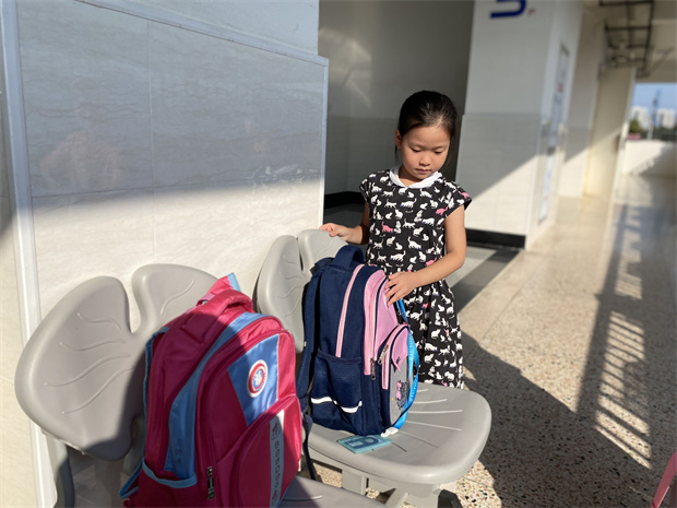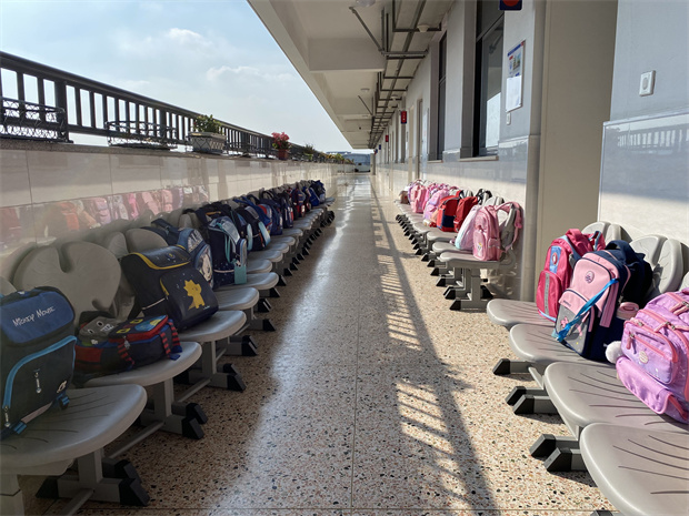 给椅子背上小书包,请椅子同学到走廊上排排站。看,我们河海小水手进出教室门时多礼貌,多谦让!椅子同学在走廊上排的队跟小水手们排队有得一比呢!