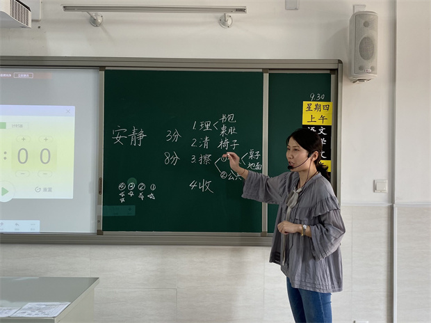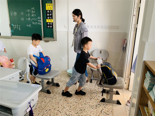 最后把椅子同学请回教室吧。现场观摩的老师们都忍不住竖起大拇指,称赞一(4)班的小水手们真能干!