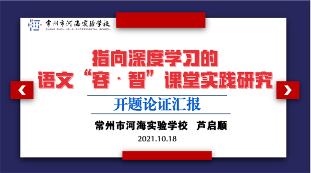 【芦启顺主任作《指向深度学习的语文“容·智”课堂实践研究》的开题报告】