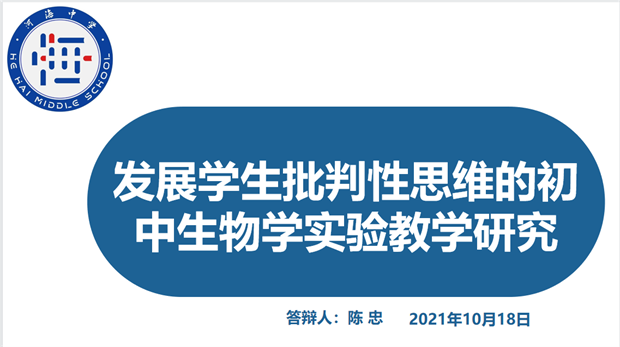 【陈忠老师作《初中生物学实验批判性思维培养的实践研究》的开题报告】