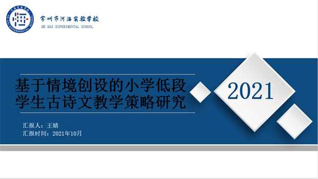 【王婧老师作《基于情境创设的小学低段学生古诗文教学策略研究》的开题报告】