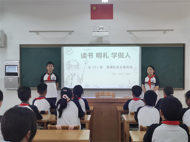 为加强同学们的文明礼仪养成教育,深入理解“八礼四仪”的内涵,我校七年级各班开展了以“八礼四仪”为主题的班会活动。