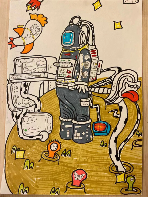 太空绚丽多彩,怎样记录我们的航天梦?一(1)班的小朋友们在胡老师的带领下,开展了“你我共绘航天梦”的主题班会课。大家你一言我一语地,发挥无限想象,最终用自己的巧手共绘“航天梦”。