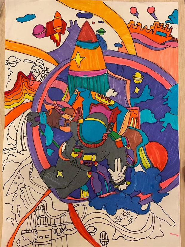 北京时间2021年10月16日0时23分,神舟十三号载人飞船在酒泉卫星发射中心精准点火发射,翟志刚、王亚平、叶光富三名航天员再探苍穹。这个消息传到了一(1)班小朋友们的耳中,大家决定将这份喜悦传递给所有河海娃。