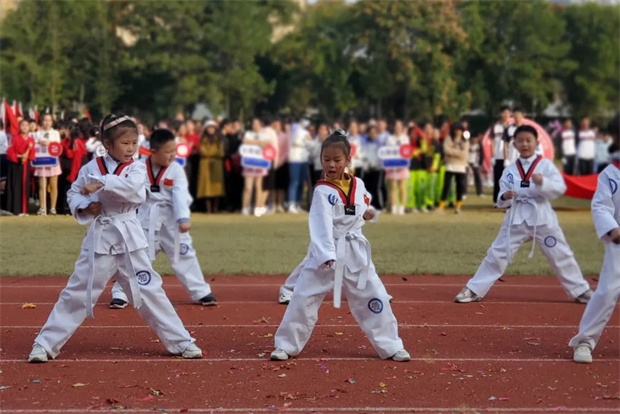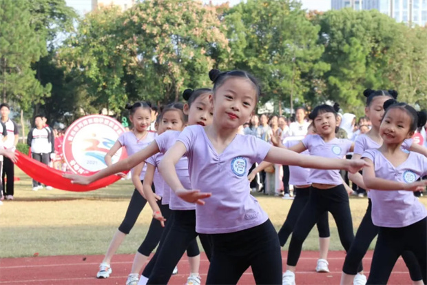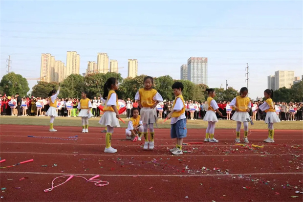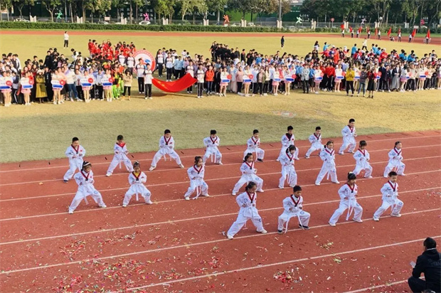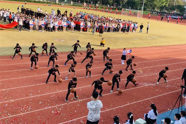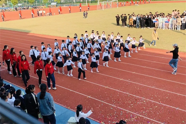 装备齐全的平衡车队炫酷登场,一二年级方阵走得有模有样,活力四射的篮球社团、动感十足的啦啦操社团、活泼可爱的中国舞社团、“气势非凡”的跆拳道社团和花样繁多的花式跳绳社团引起阵阵欢呼,萌翻全场。所谓“台上一分钟,台下十年功”,其实在一个月前,一年级、二年级小朋友们就已经开始早早地排练起来啦!