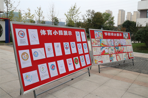 运动会开始前,各班就创作了奇思妙想的小报和丰富多样的会徽。
