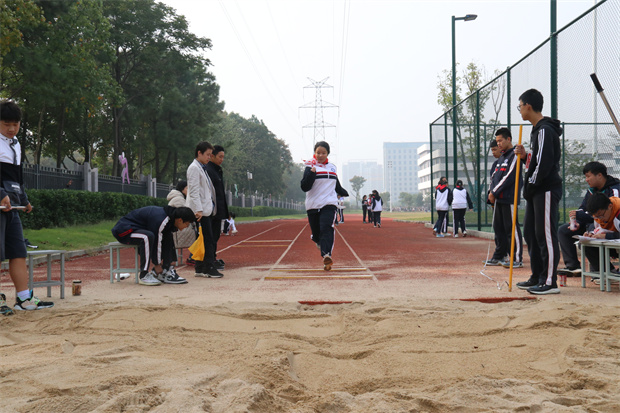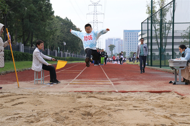 看吧,助跑、踏条、腾空、落地,腾空而起,踏在沙地,跃向成功……