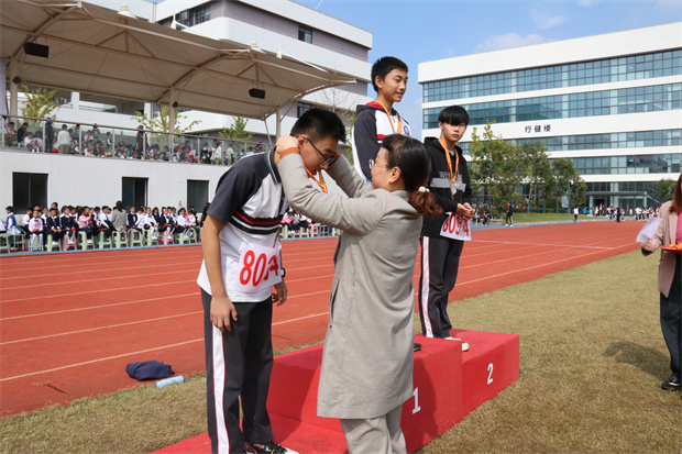 颁奖台上,同学们拿着奖牌笑靥如花。那挥洒的汗水,是他们拼搏的证明;那飞扬的号码牌,是他们胜利的勋章。