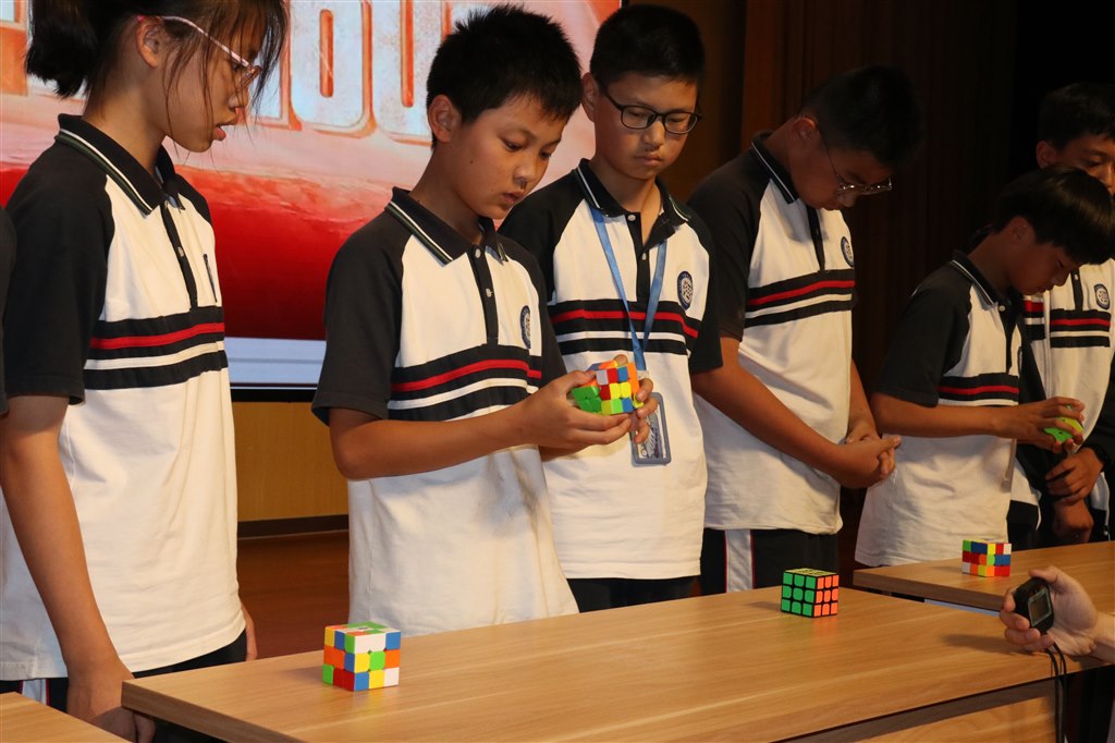 魔方赛场上,才短短的几十秒,一个还原了的魔方就神奇地出现在他手中,令我们惊叹不已。
