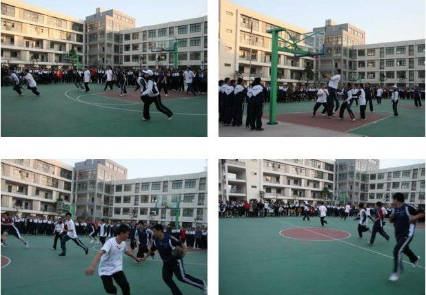 冷空气的到来丝毫没有影响他们的兴致,老师们依然短装上阵。双方队员你来我往,比赛场面精彩激烈,时而精妙的传球,时而精准的投篮,时而漂亮的快攻,时而干脆的抢断,你进一球,我夺两分,比分交替上升。观战的学生成为热情的啦啦队,不停地为