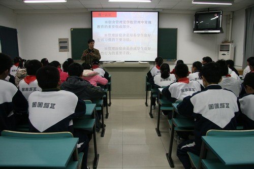 随后总务处贺主任从学校管理、习惯培养、个性发展三方面强调了寝室管理的重要性,让每一位室长明确到寝室管理是班级管理的延伸;寝室制度是中学生最基本的要求;良好寝室氛围对学习习惯的积极影响。学校针对寝室管理中集队、举止文明、健康饮食、个人卫生、内务规范、爱护公物、勤俭节约、积极锻炼、服从管理等方面提出了具体要求。同时给每位室长如何开展工作提出了四点指导意见:以身作则,榜样行为;细心耐心,积极引导;团结协作,以面促点;敢说敢做,协助管理。