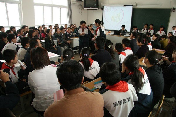 首先,家长们走进课堂,观摩课堂教学。全年级共12位老师向家长上了观摩课。家长们认真地翻阅课堂教案,专注地观察孩子们的课堂表现,并对课堂教学进行了评价。孩子们充满思辨的质疑、争先恐后的抢答、妙趣横生的语言,不时博得家长们会心的微笑和由衷的赞叹。孩子回答错了,家长们惋惜着;孩子发言不够主动,家长们着急地示意着,努力地鼓励着……智慧的课堂,激情无限;活力的课堂,魅力无穷。在零距离的课堂体验中,家长们感受着孩子们的学习状态,分享着孩子进步的喜悦、成长的快乐。每位老师亲切自然的教态、精巧的课堂设计、扎实的教学基本功、高明的课堂驾驭能力获得家长的一致好评。