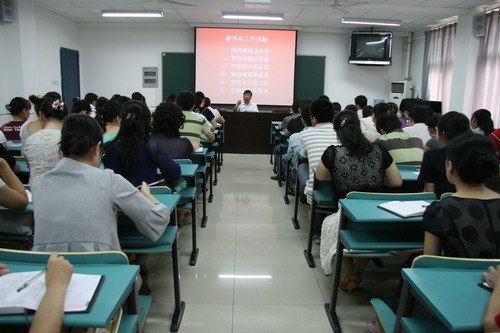会议由校长蒋顺国主持。蒋校长首先对各部门的分工进行了微调,这既是为了更好地发挥各部门负责人的自身优势,又是为了各有侧重地为教育教学服务。接着蒋校长根据二十四中总校的工作目标,结合河海中学的实际情况,提出了新学期六大工作重点,一是坚持高起点办学,二是加强两校区联系,三是打造班主任队伍,四是建设高效率课堂,五是突出毕业班工作,六是加强规范化服务。围绕这六大工作重点,蒋校长再次强调要严格依法办学,规范办学行为,严格执行市教育局“减负增效”五项规定;同时他指出本学期继续加大对各梯度教师尤其是青年教师的培养,用好学案导学,建设高效率课堂,要加强与二十四中总校紧密联系,不仅是部门之间、教研组之间、年级组之间,还要经常通过专题研讨等形式,相互交流,资源共享。