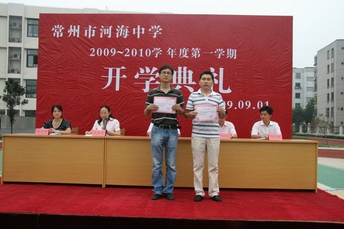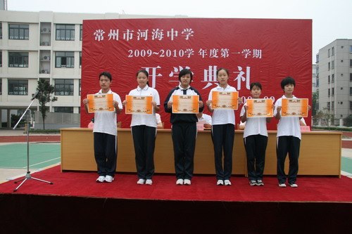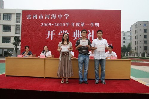 会议由教导处赵敏慧主任主持,她首先肯定了我校师生在过去一年中取得的成绩,并宣读了各项表彰决定。无论是常州市先进集体,还是新北区“美德少年”;无论是常州市“阳光体育与祖国同行” 冬季长跑活动征文摄影比赛各种奖项,还是2009年生命教育周主题班会活动方案评选活动的各项桂冠;无论是河海中学文明班、表扬班,还是河海中学优秀班主任……都在向人昭示着,在过去的一年中,勤劳能干的河海师生同心协力,收获颇丰。