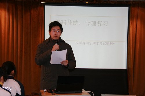 复习重实效。接着在公布了期末调研的日程安排以后,会议又就如何进行有效复习,达到最大效率对同学们进行了指导。一是要制定可行的计划,“凡事预则立,不预则废”,两位“自主学习之星”曹佳颖和姚冰玥同学的计划极具代表性,为同学们制定更好更科学的复习计划提供了借鉴;二是查找问题,“知己知彼,百战不殆”,学生自主管理委员会的两位委员调查了各年级部分同学,得知了他们在复习中遇到的各科问题,并就这些问题给大家提供了一些有用的建议;三是有效的方法,方法得当才能事半功倍,会上又邀请了