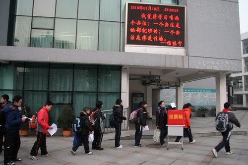 为了加强师德师风建设,发挥教育评价功能,促进教育教学改革,提高教育教学质量,常州市河海中学近日开展了民主评教活动。全体学生于上周五放学时将《任课教师学生满意度测评表》带回家中认真测评,本周来校后直接放入学校票箱中。经汇总,投票回收率为95℅,学生满意度为98.6℅。