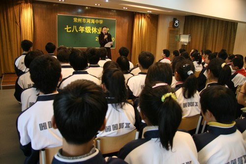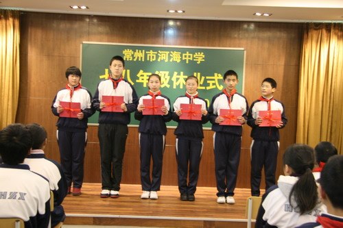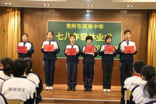 河海中学继上午及时高效的试卷评讲后,于2010年01月30日中午又趁热打铁地举行了本学期七、八年级休业式。