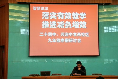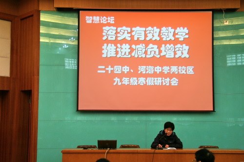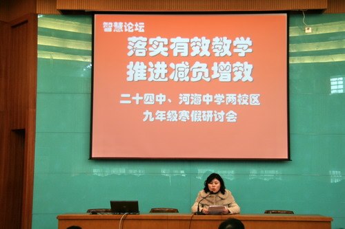 为了在减负增效背景下落实有效教学,加强毕业班工作研究,明确新学期工作重点,02月01日上午,河海中学中层干部、九年级考试学科教师于寒假第一天就相聚在二十四中,参加两校区共同召开的毕业班工作研讨会。