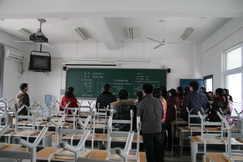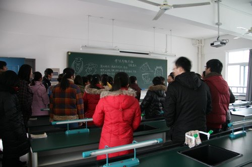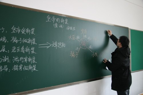 下午的安排同样分为两部分。首先是板书设计,大家根据自己的教学内容设计一次板书,既要实实在在,又要有一定的艺术性。完成后蒋校长带领所有人逐一观摩每位老师的板书,以供大家互相学习。回到多媒体教室,马成、宋净、陈莉等五位老师和大家进行了案例分析交流,最后由蒋校长做了总结,并对青年教师提出了殷切的希望。