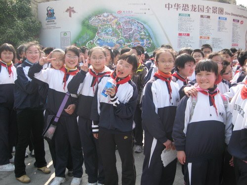 接着,同学们按小组自由活动——既参观了中华恐龙馆,了解关于恐龙科普知识,也尽情地享受着中华恐龙园里惊险刺激的游乐项目。偌大的乐园里不断传来欢笑声:疯狂火龙钻下无拘无束的尖叫声,雷龙过山车后的兴奋晕眩,穿越侏罗纪时的紧张与快乐,还能一睹憨态可掬的泰象的表演......这样的美妙,欢快和激情,我们都能用手去触摸,去感受。欢声笑语中,孩子们的心灵也被和风洗涤得一尘不染。