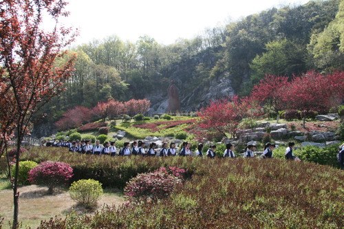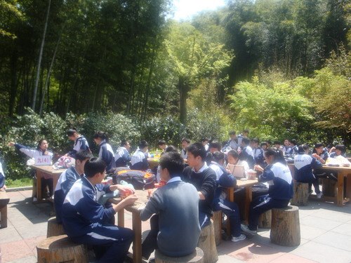 九年级全体师生沐浴在明媚的春光中,踏上了去南山竹海的快乐旅程。一路上,学生看不够沿途的风景,陶醉在醉人的绿色中。“小鸟天堂”倾听鸟语、观赏表演;“竹海静湖”轻抚碧波、放松心灵;“吴越第一峰”全力拼搏、力争上游。面临即将到来的中考,九年级同学在自然中彻底舒缓了紧张的情绪。同时学生们还能爱护自然、注重环保,活动过程中不破坏草木,垃圾不乱丢,这又是一道漂亮的人文风景。