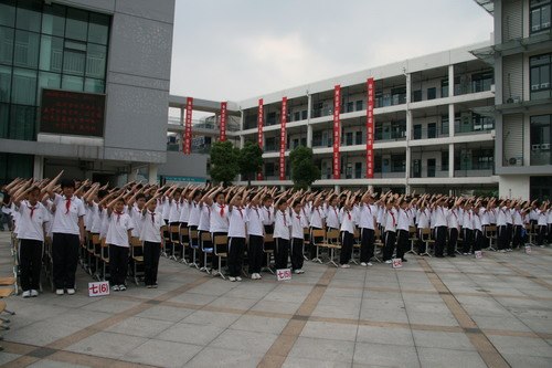 最后,在欢快的乐曲声中,同学们带着对胸前红领巾的依依不舍,饱含对新生活的美好憧憬,将佩戴了七年的红领巾郑重地摘下,轻轻折叠整齐,缓缓地放入口袋,怀着神圣而激动的心情与它告别,永久地珍藏着。活动在同学们庄严的誓言中结束:“不怕困难,不怕敌人,顽强学习,坚决斗争,向着胜利,勇敢前进,我们是共产主义接班人!”