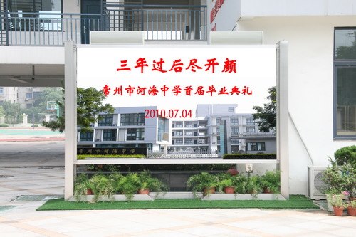 鲜花与笑容相映,这是共享首届大捷的隆重庆典,三年过后的今天我们尽享着丰收的欢乐;离愁和祝福相伴,这是聚散依依的告别仪式,愿河海中学首届毕业生带着心中的梦想,携着母校的祝福,伴着感动出发,在未来的广阔天地里飞得更高!相信明年的今日我们将再尽欢颜!