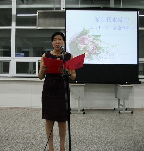 同学们没有忘记一直陪伴三年的老师代表、食堂师傅、保洁阿姨和保安叔叔,向他们送上最真挚的祝福、最芬芳的鲜花!家长代表九(1)班陆徐淳同学的家长诉说了他们由衷的感谢和祝愿的心声,并建议将最热烈的掌声献给我们进步中的河海中学,献给我们尊敬的老师,献给我们成长起来的孩子们!