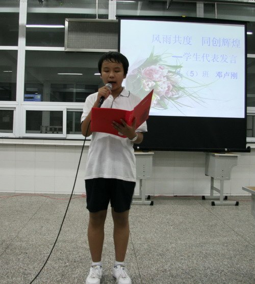 同样的心情,同样的挂念,八年级学生代表宦兰馨、张路遥的贺词《为你们喝彩》,表达对学长学姐们的感激、敬佩和骄傲之情,送上同为河海学子的最真挚的祝福。毕业生代表邓卢刚回忆了三年河海生活的点滴感动:有同学陪伴一起勇攀书山的豪迈,有朋友陪伴一起挥洒汗水的艰辛,有师长陪伴一起茁壮成长的喜悦。并表达了对师恩的无限感激、作为河海学子今后不懈的追求和“母校以我为荣”的豪情。