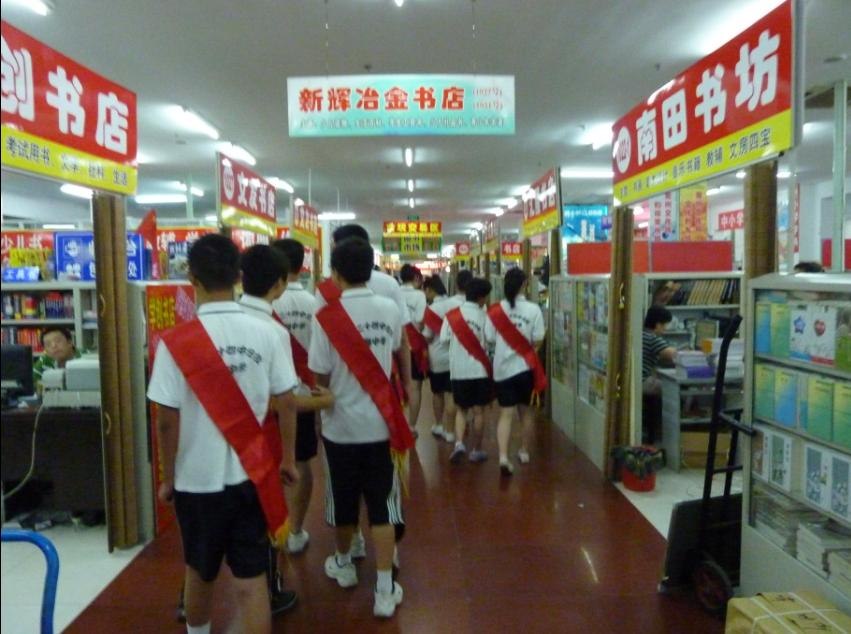 本次活动由学校牵头,各年级组负责,指定专门老师带队,有60名八年级同学和90名七年级同学参与,人员分工明确、有序。每位参与的学生都经过文化城工作人员的专门指导、培训,再经过自身半天的学习、适应,才能真正走上工作岗位。书店的工作人员告诉大家:作为一名图书导购员除了要有基本的专业知识——对33个经营户的大致位置、摊位号、经营图书的种类都要大致了解;还要了解顾客购买心理,正确引导读者;最后还需具备一定的公关能力,善于与人沟通,进行暑期文化城其他两项活动的稿件回收引导;同时,更要牢记“导购形象即文化城形象”,能够较好地展示自身形象。