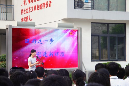 蒋顺国校长代表学校发表了讲话。首先他充分肯定了老师和同学们发言的高质量,诠释了大会主题“孕育着新的希望”的理由:有首届的铺垫、有两年的基础、有优秀的师资、有明确的目标。接着明确了本届发展的目标:尖子数量突破,整体发展均衡、校区差异缩小。最后向同学们提出了希望:端正态度、细化目标、充满信心、懂得珍惜。蒋校长语重心长的讲话,给了同学们深刻的启迪,学校的重视和信任也给九年级全体师生注入了无穷的力量。