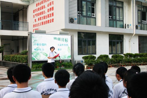 大会由年级组长戴亚萍老师主持,她激情洋溢的开场白带动着全场的气氛。各班班长通过精心准备的课件,亮出了班级的奋斗目标,喊出了各自的口号决心,落实着具体的行动措施。各班新颖有力的主题词“迎接新学期,迎接新挑战”、“就在这一刻,我们准备好了”、“下一秒,我们前行,向中考进发”、“展开我们的奋斗之翼”、“向着梦想,不断超越”、“并肩携手,我们更精彩!”代表了六个班级312位同学的豪情壮志,将见证着我们的切实行动和坚实步伐。班长们具有班级特色的展示、激情的语言和屏幕上丰富的内容、宜人的色彩相得益彰,博得了阵阵掌声,鼓舞了大家昂扬的斗志。