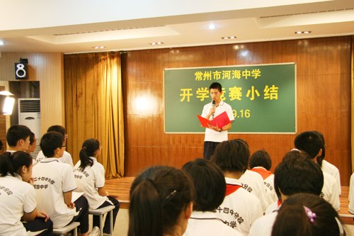 面对新学期,河海人依然热忱踏实,校务工作井然有序。开学以来,各班根据开学竞赛的要求努力做到常规管理精细化、班级建设特色化,涌现出了许许多多优秀班集体。本次活动宣布了竞赛结果,并对优胜班级、表扬班级颁发奖状,然后由七(2)班周英杰,八(1)班孙吉宇,九(2)班姚冰玥作为各年级代表介绍了开学的新风貌,表达了将携手前进,共同努力的决心。