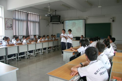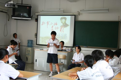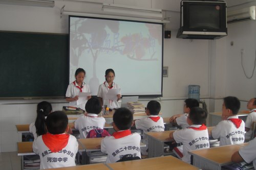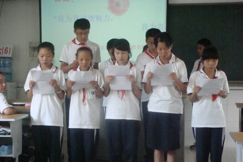 本次主题班会活动形式多样,内容丰富,节目多彩,有朗诵、小品、舞蹈、乐器演奏、歌曲演唱等。班会中,学生们演奏古老的乐器:古筝、二胡……当悠远的音乐响起,民族之情在每一个人心中激荡;班会中,学生们激情朗诵,展示旧中国黑暗压迫的历史与中华人民共和国成立后翻天覆地的变化,触动着每个人的心灵;班会中,学生们放声歌唱,激情盎然,用心歌颂伟大的祖国、赞美伟大的民族英雄,使人心潮澎湃。八(5)班的主题班会更是感染了在场的所有师生,他们用饱满的热情,向上的态度一次次地歌唱,一次次地朗诵,爱国之心,报国之情展现在每一个学生的脸上,也渗透进每个学生的心里。