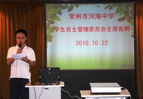 在过去的一年里,校园里活跃着这样一支团队:他们由一群既平凡又不平凡的青少年组成,平凡在于他们每一位都来自同学之中,却本着一颗责任心和满腔的热情做着一些不平凡的事情,成为学校和同学们联系沟通的强劲纽带,成为同学们们自主管理、自我锻炼的优秀平台,这就是学生自主管理委员会。优秀的队伍需要新鲜血液的注入,10月22日中午,我校隆重举行了第三届学生自主管理委员会主席竞聘活动。
