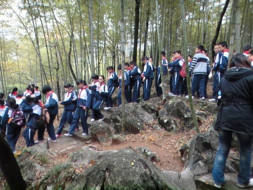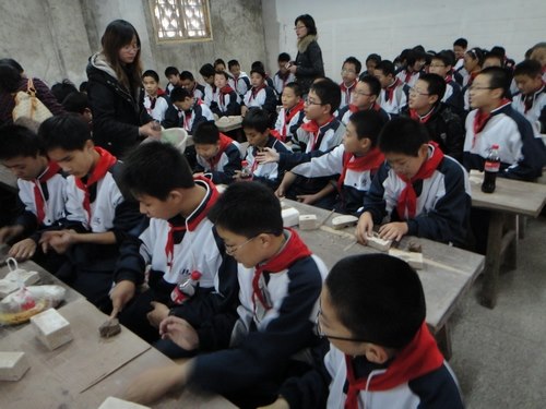 活动的第一站是山顶的陶吧。同学们拾级而上,穿过茂林修竹,到达目的地。在工作人员的讲解后,同学们开始“大显身手”,制作自己的小茶壶:切陶土、拓模子、捏壶身、合成模型、修改完善、最后成形,每一步骤皆有板有眼。