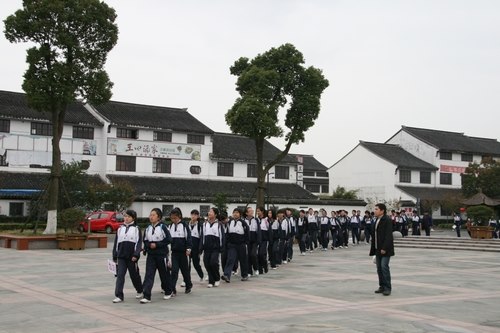 清晨,深秋的寒意正浓,河海中学九年级师生已整装待发,激动的心情,欢愉的笑声温暖了整个校园,只为探寻沙家浜那永不消褪的红色遗迹。