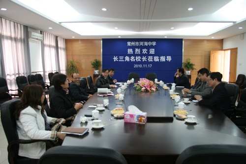 11月17日,首期长三角校长班十一位名校长访问我校。蒋顺国校长真诚地接待了来访团,并在和谐的氛围中与各位名校长进行了座谈。结合河海中学的三年办学情况,蒋校长围绕“教育意味服务”、“安全重于泰山”、“质量就是生命”等话题与名校长进行了交流,他的精练发言及鲜明观点得到了与会专家的认同。