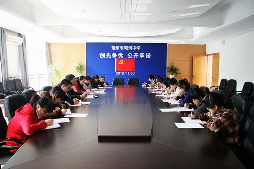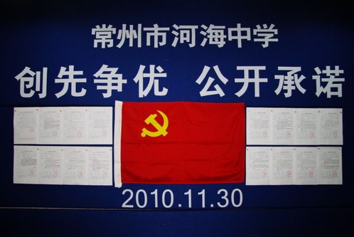 在推进创先争优活动中,河海中学党支部在党员中开展公开承诺活动,以此强化党员的自我约束,激发创先争优的内在动力。