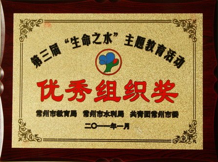 由常州市教育局、常州市水利局和共青团常州市市委联合举办的常州市第三届“生命之水”主题教育活动在2010年12月27日落下了帷幕。在本次活动中,我校成绩突出,荣获“优秀组织奖”。有19个作品、19位同学分获一、二、三等奖,另外“珍爱生命之水”综合实践活动荣获创意奖。