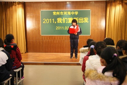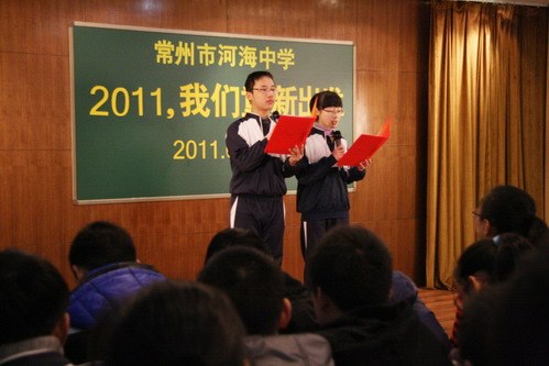最后,校长蒋顺国代表学校作新学期致辞。他向全体师生表达了三点心愿:热烈的祝贺——2010是学校精彩的一年;诚挚的祝福——我们的学生赶上了幸福时代;衷心的祝愿——2011挑战之年,河海师生勇往直前。兔年,在这里,蒋校长和我们一起播下了希望,也许诺与我们一起收获兔年的幸福。