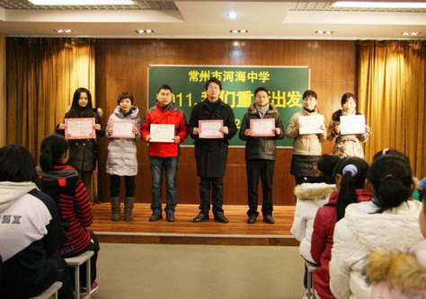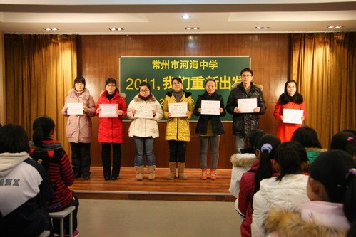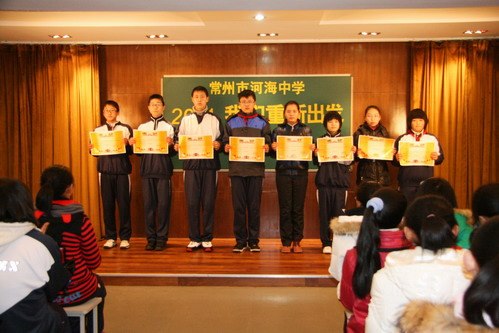 开学典礼首先进行的是颁奖仪式。过去的一个学期是河海中学成果丰硕的一个学期,我校教师在辅导竞赛、个人参赛、各类评优中获得佳绩。校“文明班”、“表扬班”的评比也有了结果。一份份沉甸甸的获奖证书散发出的光芒温暖着我们心田,激励着我们奋进。