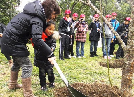 09:30,开幕式正式开始,无论是亲和的领导讲话,还是精彩的文艺表演,小记者们或记或思或影,煞有介事,认真非凡。10:00时,他们又分为三组,交叉进行“踏春赏梅”、“梅花摄影展”及“梅花奇石展”的活动。同学们个个都珍惜这次机会,围上了参观的游客,你一言我一语,大胆提问,仔细记录。在场的游客们也被他们的胆识、口才所叹服,不由得竖起大拇指。10:45左右,本次开幕式的高潮:“我和梅花一起成长——市民植梅活动”开始了,可爱的小朋友们在家长陪伴下亲手栽种下一课棵梅花树,让梅花与自己一同成长。而这时,小记者们也争先恐后地爬上小山坡,为参加植梅活动的市民们摄影,采访他们的感受。