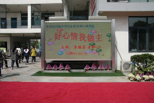 2011年03月16日中午,阳光明媚,春意盎然,从河海中学小广场传来阵阵掌声和欢笑声,原来这里正在举行生命教育周活动。我校的国家二级心理咨询师、常州市赵世俊名教师工作室成员李锁芳老师为学生们开设主题为《好心情我做主》的心理健康专题讲座。