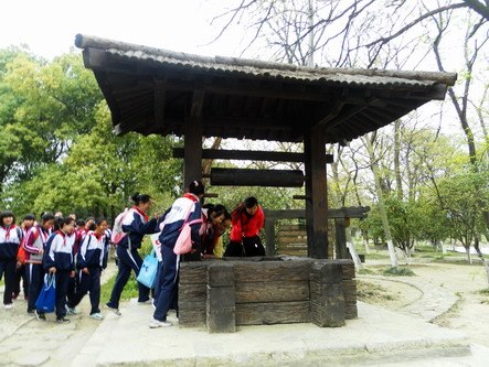 活动的第一站是淹城遗址。大门口,望着那一个个典雅而古朴的象形文字、厚重而雄浑的青铜大鼎,同学们就感觉自己仿佛走进了历史长河中,溯源而上,回到了那兵荒马乱、枭雄更替的动荡年代。依城而走,孩子们看到了城墙逶迤起伏,看到了护城河清波荡漾,也看到了城内绿树成荫,茂林修竹环围……水护城,城依水,无怪古人有云:“相望斯城之风景,莫不啧啧而叹”。孩子们也不由赞叹,三城三河,果然独一无二。