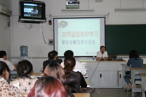 五一小长假的最后一天,我校举办了七年级家长学校家庭教育讲座,家长们纷纷走进各自孩子的课堂,聆听北京四中网校教育专家张晓锋讲授的关于家庭教育与学生学习习惯培养的报告。他们聚精会神,边听边记,格外投入。