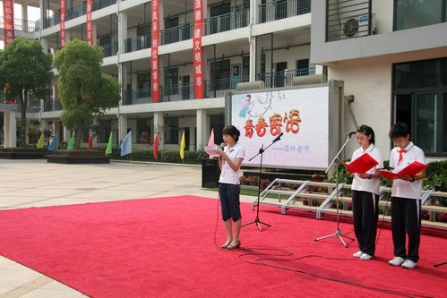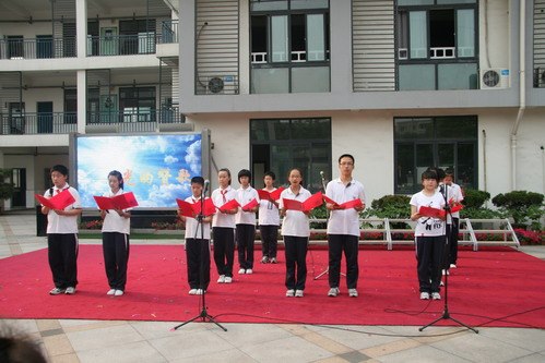 仪式的第二部分,同学们以“合唱比赛”和诗朗诵的形式庆祝着属于自己的纪念日:《红蜻蜓》、《爱》《我的中国心》、《天路》……在迈出青春第一步的庄严时刻,他们用歌声唱出了激情,用歌声描绘了更加美好的蓝图,也表达了自己对未来成长路程的坚定信念。教导处赵敏慧主任宣布了比赛结果并颁奖。
