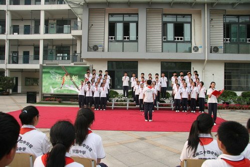 为了进一步完善我校团组织工作,同时给七年级全体学生的少先队生活划上圆满的句号,激发他们更加积极、自信、阳光地跨入青春这个崭新的阶段,学校团委组织全体七八年级学生在小广场开展了以“告别童年,放飞青春”为主题的歌唱比赛暨七、八年级团团队联谊活动,校领导、七、八年级的老师和同学们共同见证了这一难忘时刻。